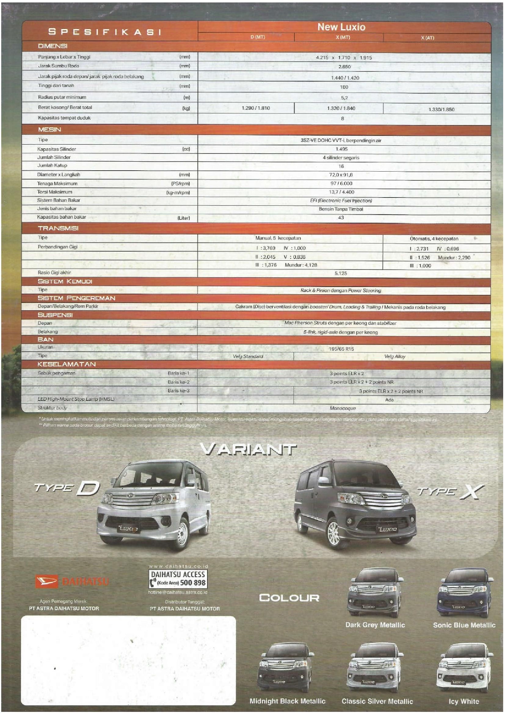 Berikut Detail dan Spesifikasi Mobil Daihatsu Luxio